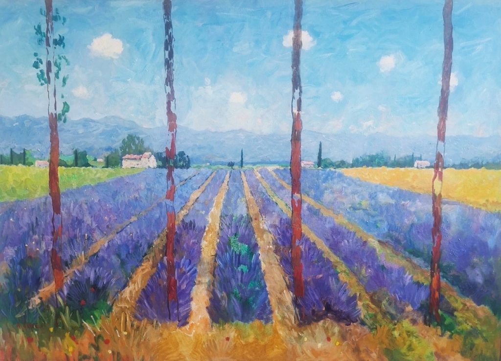Lives in London but travels a lot particularly to Mediterranean countries seeking heat and light which inspires my work.